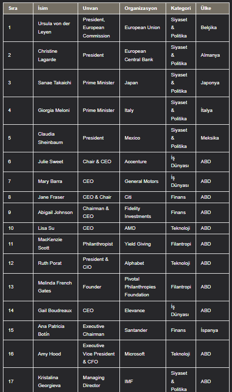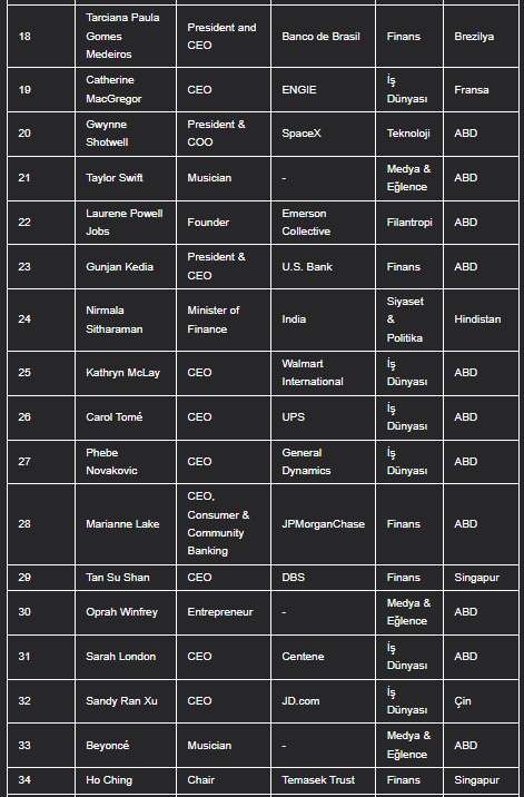 FORBES’UN 100 KİŞİLİK LİSTESİ