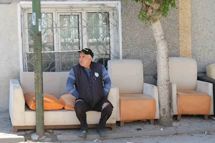 “Zaten yaşlı, 70-80 yaşında insan sayısı burada fazla. İnsanlar ayakta duramıyor, bu sebeple böyle bir çözüm bulmuşlar. Komşular, sağdan soldan topladıkları koltukları sevabına buraya koymuşlar. Biz de camiden zaman zaman buraya eşya getiriyoruz. En azından kabin olmasa bile şuraya bir oturak koysalar, insanlar oraya dayanır oturur. Burada sadece tabela var.”