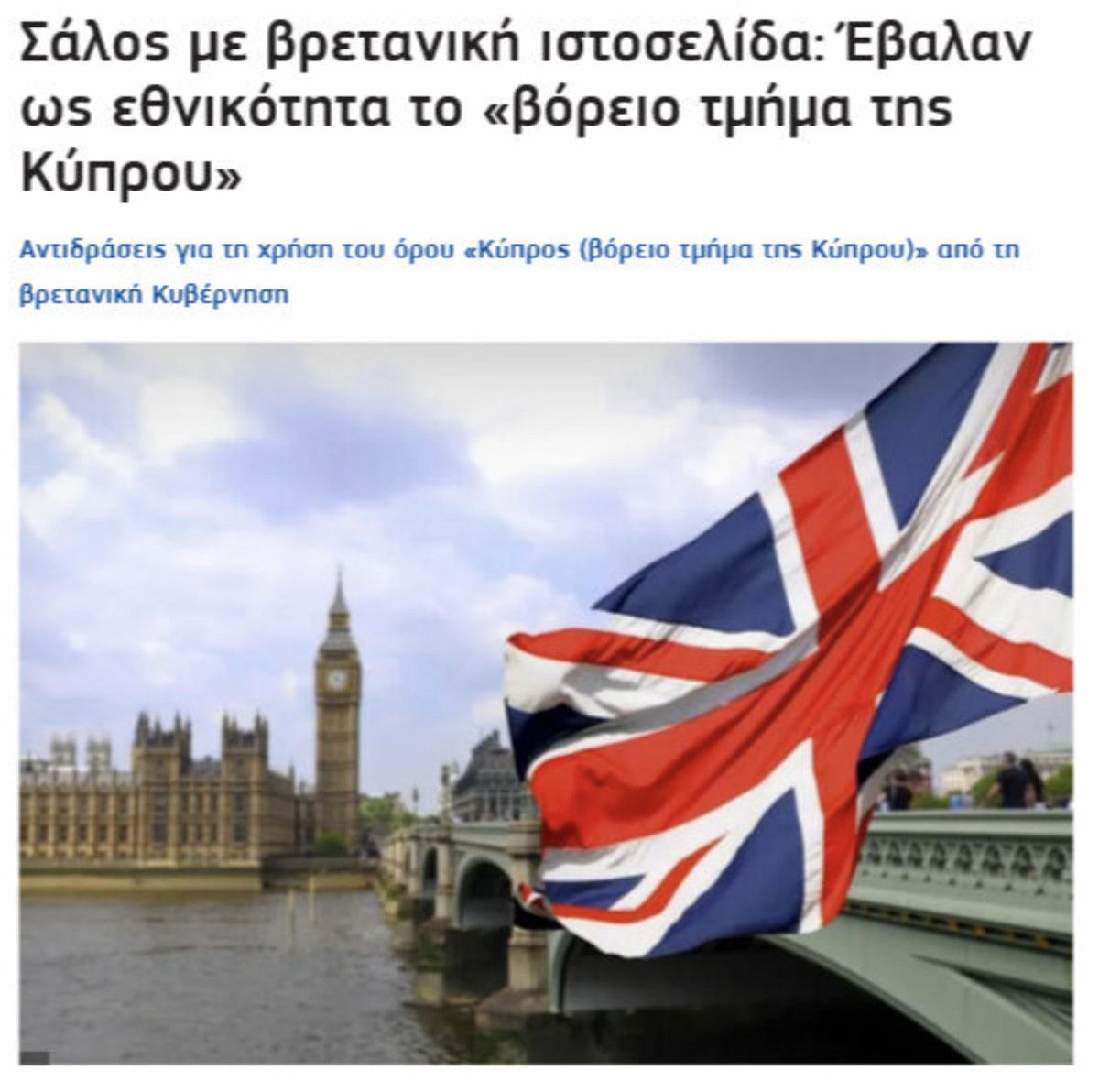Yunanistan’ın SigmaLive gazetesi, “İngiliz web sitesinde tartışma: ‘Kıbrıs’ın kuzey kısmı’ milliyet olarak listelendi” başlığıyla haberi duyurdu.