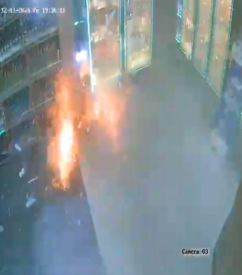 Öte yandan olay, güvenlik kamerasına yansıdı. Görüntülerde, yüzü kapalı şüphelinin kapısını açtığı marketten içeri patlayıcı madde atıp kaçtığı, bir süre sonra patlamanın meydana geldiği ve yangın çıktığı, iş yerinin yanından geçen bir kadının da patlama sırasında kırılan camlardan etkilenip, hızla bölgeden uzaklaştığı görüldü. Ayrıca, çevredekilerin marketin içine girip, bidonla su dökerek yangını söndürmeye çalıştığı anlar da kameraya yansıdı.